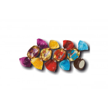 Конфеты куполообразной формы в кондитерской глазури с нежной сливочно-фруктовой начинкой со вкусами: "Вишня", "Яблоко", "Клубника", "Банан", "Миндаль" с добавлением цельного ядра фундука