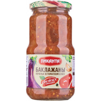 Баклажаны печеные и заправленные томатным соусом обладают мягким вкусом сочных томатов и отлично дополнят приготовленное вами блюдо Энергетическая ценность, ккал: 50 Условия хранения: при температуре хранения от 0 градусов C до 25 градусов С и относительной влажности воздуха не более 75% Пищевая ценность: углеводы 7,0г, жиры 1,5г, белки 1,5г Состав: баклажаны, томатная паста, лук репчатый, масло подсолнечное рафинированное дезодорированное, морковь, сахар, чеснок, соль поваренная пищевая, пряности Количество в коробе: 12