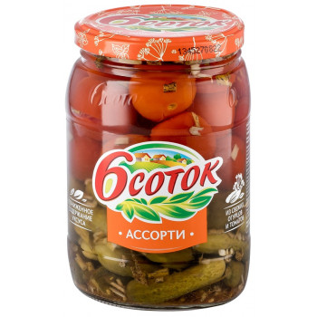 Огурчики 6 СОТОК – высококачественные огурчики с насыщенным вкусом и натуральным составом. Идеальный баланс специй придает продукту изысканный пряный вкус. Это превосходная закуска к мясным и другим горячим блюдам, ингредиент для салатов и соусов