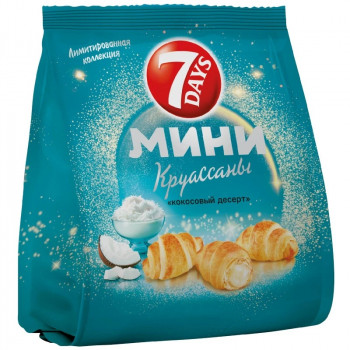 Круассаны "7DAYS" - готовая к употреблению выпечка из нежного теста с восхитительными кремовыми и джемовыми начинками. Мини-круассаны - это много маленьких вкусных круассанов в одной упаковке. Прекрас...