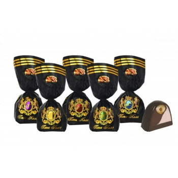 Конфеты куполообразной формы в тёмной кондитерской глазури с тёмной и светлой пралиновой начинками с добавлением арахисовой пасты, со вкусами:" Фисташка", "Миндаль", "Лесной орех", "Ванильно-сливочный...