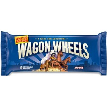 Печенье бисквитное Wagon Wheels суфле с джемом и глазурью — это две пластинки хрустящей бисквитной выпечки в глазури из молочного шоколада, с прослойкой из молочного суфле и ягодного джема.