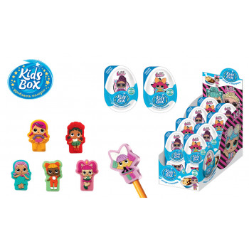 Десерт с подарком в пластиковых половинках. В одной половинке - десерт. Во второй половинке - игрушка в полиэтиленовом пакете с лифлетом и ложка.