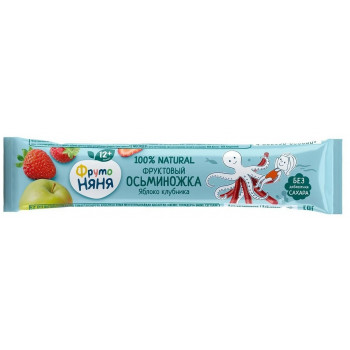Фруктовые кусочки ФрутоНяня из яблок и малина с 12 мес 16 г Натуральное полезное лакомство для детей Изготовлено только из натуральных фруктов без добавления сахара путем смешения фруктового пюре и сока в однородную фруктовую массу и бережного удаления лишней влаги Пектин содержащийся в яблоках положительно влияет на деятельность желудочно кишечного тракта и способствует процессу пищеварения железо необходимо для профилактики анемии а витамин С укрепляет иммунитет участвует в регуляции обмена веществ необходим для профилактики анемии. Малина богатый источник витамина С который способствует укреплению иммунитета С фруктовыми кусочками можно баловать малыша без лишнего беспокойства.